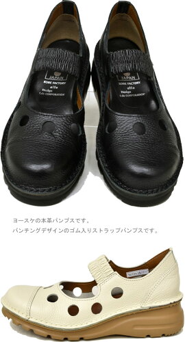 パンプス コンフォート ストラップ 本革 レザー ブラック アイボリー 黒 白