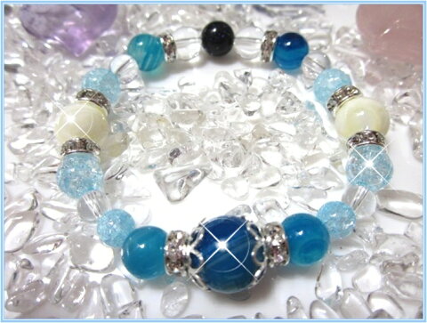 【サイズ・容量】 内周:Sサイズ:≒15cm Mサイズ:≒16cm Lサイズ:≒17cm 珠サイズ:基本サイズ:Mサイズ(内周≒16cm) アゲート:12mm±0.5mm×1個 アゲート:8mm±0.5mm×4個 マザーオブパール:10mm±0.5mm×2個 クラック水晶(着色):8mm±0.5mm×4個 クラック水晶(着色):6mm±0.5mm×2個 クリスタル:8mm±0.5mm×2個 クリスタル:6mm±0.5mm×4個 ロンデル:径7mm・厚さ3.5mm×8個 花形飾り:ゴールドorシルバー:2個 選べるパワーストーン:8mm珠×1個 (基本:ブルーゴールドサンドストーンorローズクォーツ) ※Sサイズ=クリスタルが全て5mm珠になります。